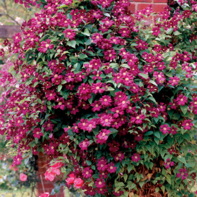 As the newly planted clematis produces new growth this should be carefully trained and tied into position.