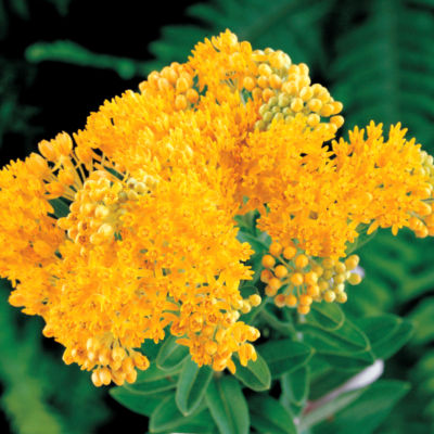 One of the finest native American perennials, Asclepias brightens the mid- to late-summer sunny garden with massive bloomheads, followed by handsome seedpods that are unequalled in dried arrangements. Now this coppery-orange species has a bright yellow cousin with the same great drought resistance, free blooming habit, and irresistible appeal to butterflies and bees!